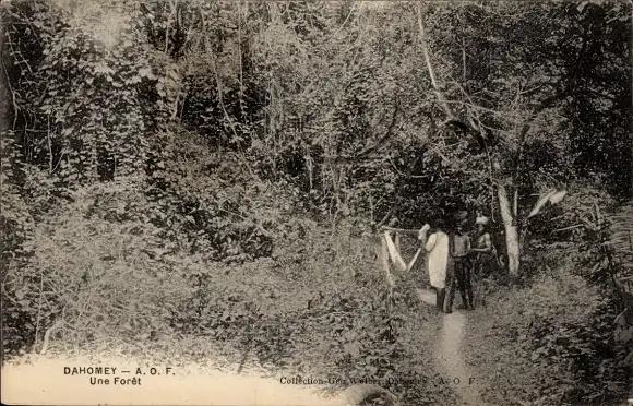 Ak Dahomey Benin, Waldszene, zwei Menschen, Natur, mystische Atmosphäre
