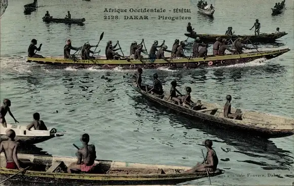 Ak Dakar Senegal, Boote auf dem Wasser, Pirogues, Menschen im Wasser, Senegal