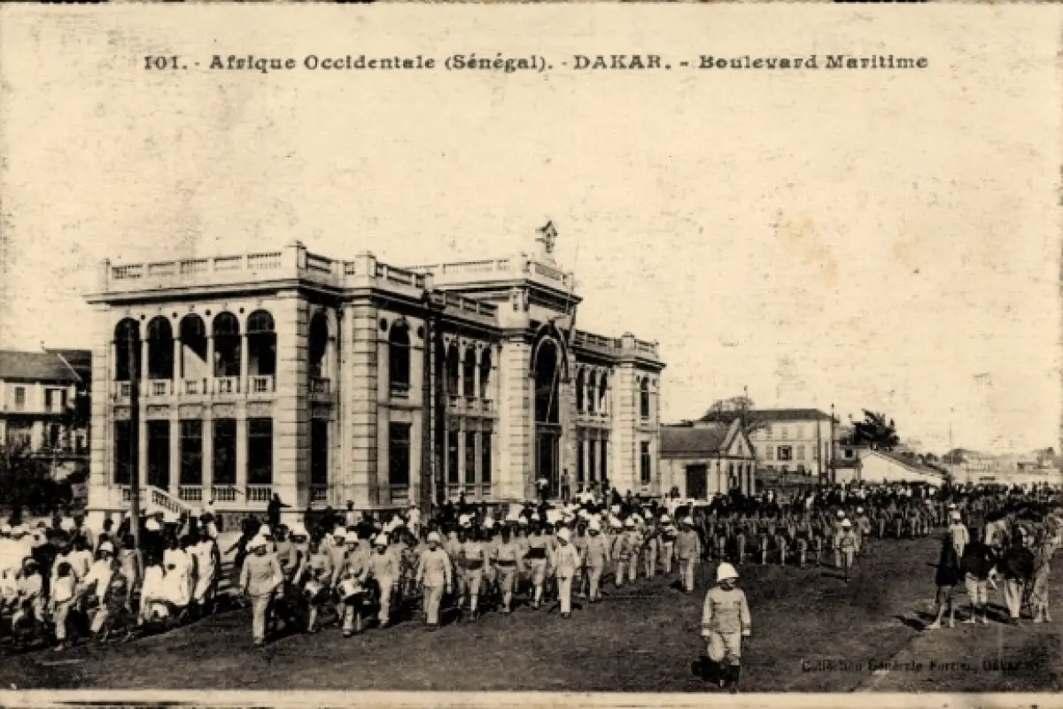 Ak Dakar Senegal, Boulevard Maritime in Menschenmenge, Architektur
