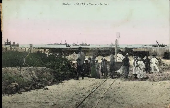 Ak Dakar Senegal, Hafen, Bauarbeiter, Lore