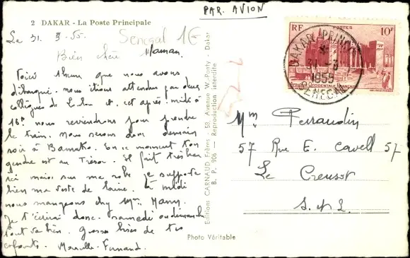 Zustand, siehe Scan, gelaufen, 1955 - ca 14 cm X 9 cm