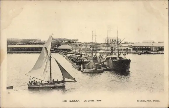 Ak Dakar Senegal, La petite Jetee, Hafenpartie, Segelboot, Dampfer