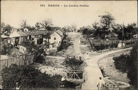 Ak Dakar Senegal, Le Jardin Public, Straßenpartie, Wohnhäuser