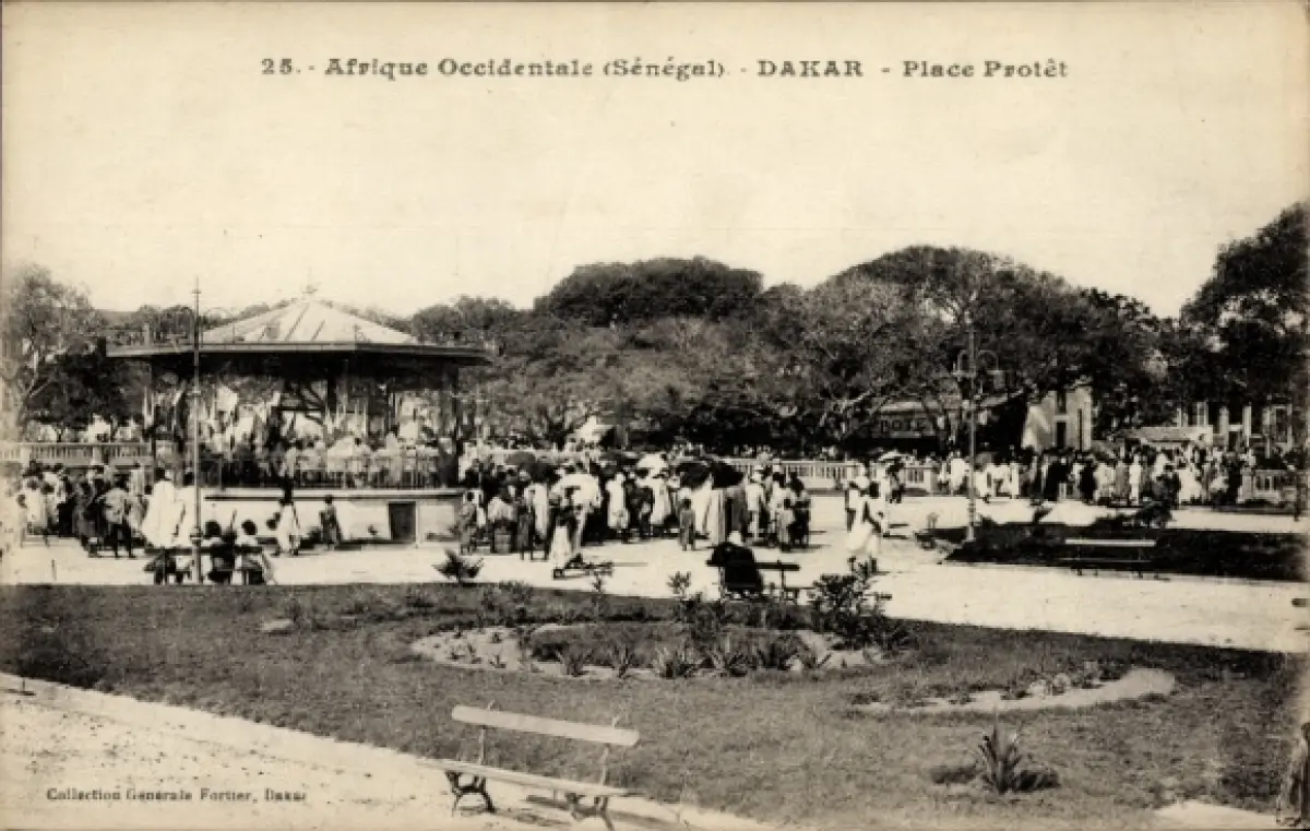 Ak Dakar Senegal, Place Protêt, Menschenmenge, Kiosk, Bäume,