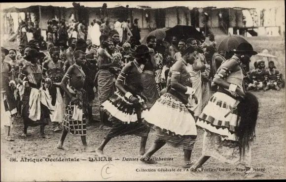 Ak Dakar Senegal, Tanzende Afrikaner in Trachten