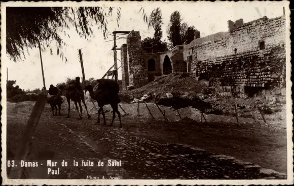 Ak Damas Damaskus Syrien, Mur de la fuite de Saint Paul