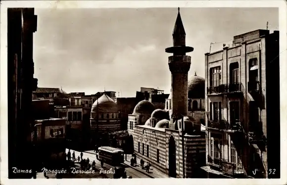 Ak Damaskus Syrien, Dervische Pacha Moschee, historisches Stadtbild, Straßenbahn
