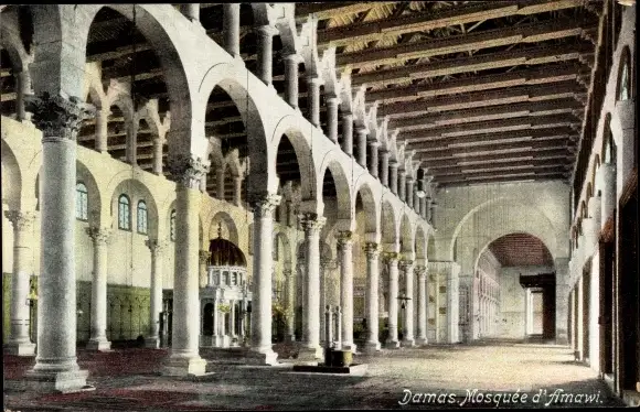 Ak Damaskus Syrien, Mosquée d'Amawi, Moschee, Innenansicht, Säulen
