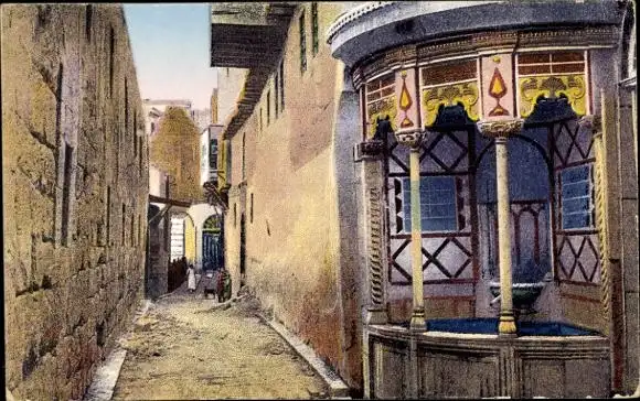 Ak Damaskus Syrien, Straßenpartie, Brunnen