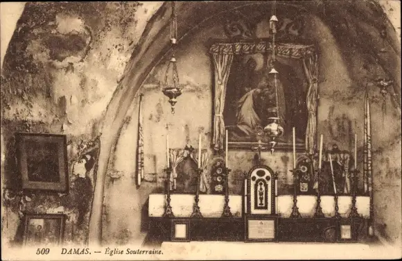 Ak Damaskus Syrien, Unterirdische Kirche, Altar