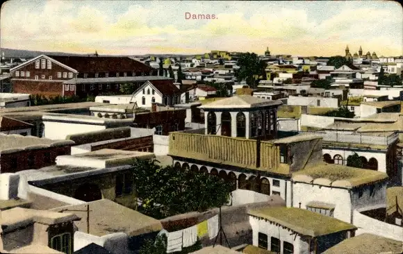 Ak Damaskus Syrien, Vogelschau auf den Ort, Hausdächer