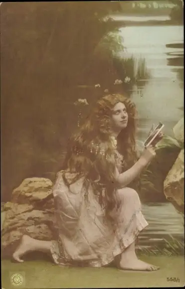 Ak Dame in Kleid, Portrait, NPG 558/1, Spiegel, lange Haare