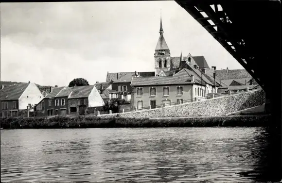 Ak Damery Marne, Kirche vom Rande der Marne aus gesehen