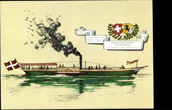Ak Dampfboot Stadt Schaffhausen, Raddampfer, Wappen
