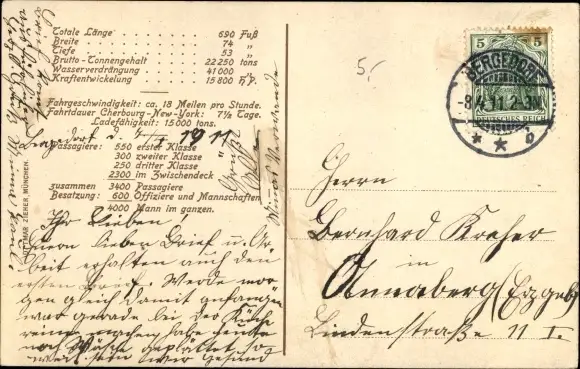 Zustand, siehe Scan, gelaufen, 1911 - ca 14 cm X 9 cm