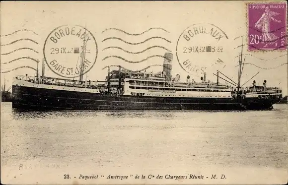 Ak Dampfer Amerique, Compagnie des Chargeurs Réunis