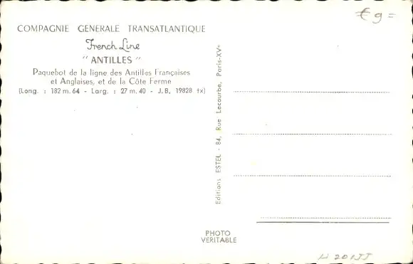 Ak Dampfer Antilles, CGT, French Line