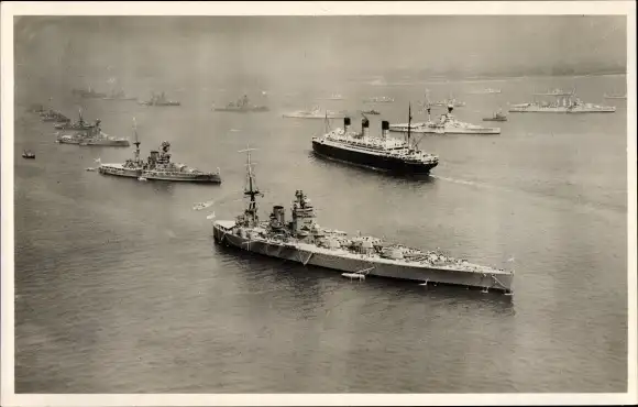 Ak Dampfer Berengaria, Cunard Line, Britische Kriegsschiffe