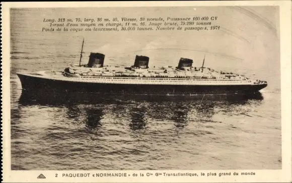 Ak Dampfer, Dampfschiff, Paquebot Normandie de la CGT, French Line