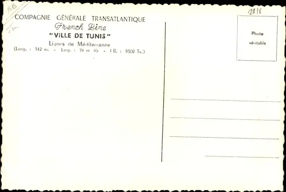 Ak Dampfer, Dampfschiff Ville de Tunis, CGT, French Line