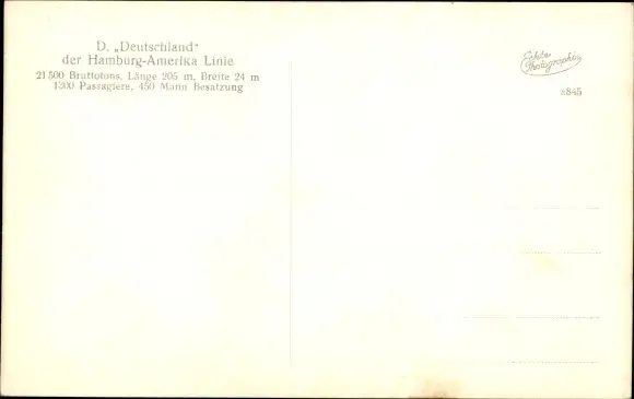 Ak Dampfer Deutschland, HAPAG, Ansicht Backbord