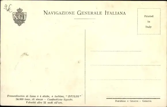 Ak Dampfer Dvilio, Navigazione Generale Italiana, NGI