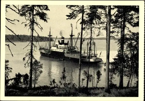 Ak Dampfer Elbing, Reederei Poseidon, Ladung von Holz in Südfinnland