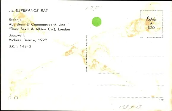 Ak Dampfer Esperance Bay, Shaw Savill Line