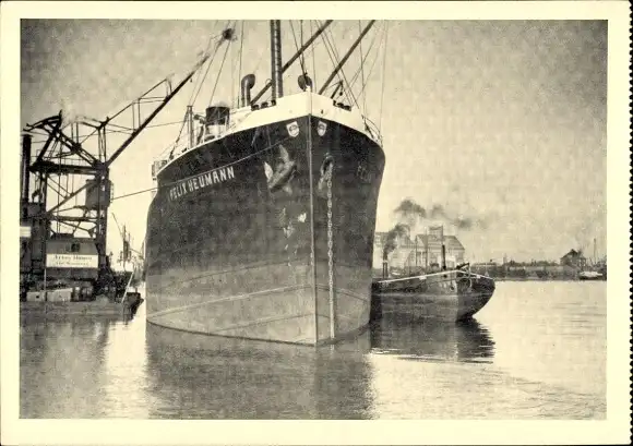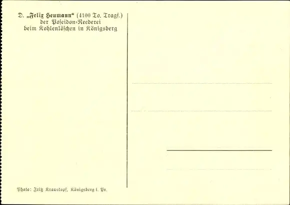 Ak Dampfer Felix Heumann beim Kohlenlöschen in Königsberg, Poseidon-Reederei