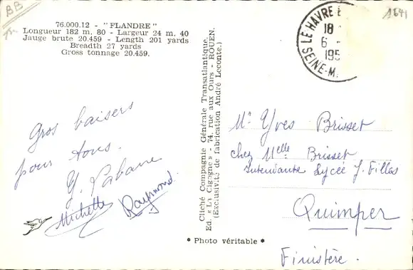 Ak Dampfer Flandre, CGT French Line