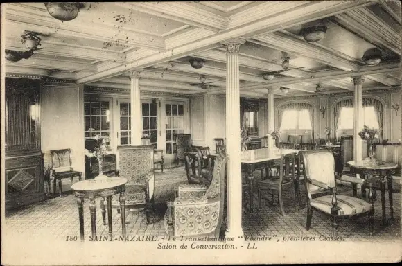 Ak Dampfer Flandre, Innenansicht, CGT, French Line