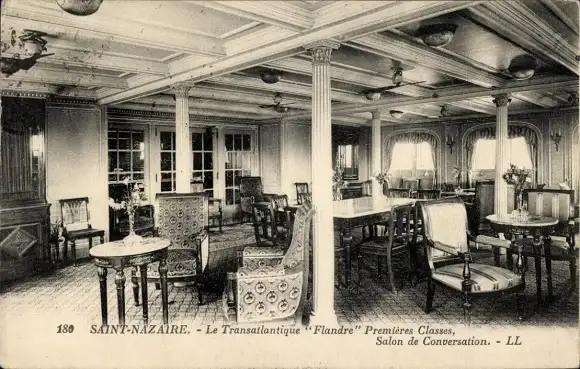 Ak Dampfer Flandre, Innenansicht, CGT, French Line
