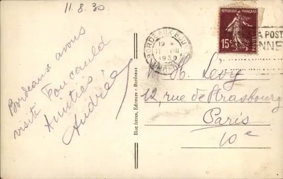 Zustand, siehe Scan, gelaufen, 1930 - ca 14 cm X 9 cm