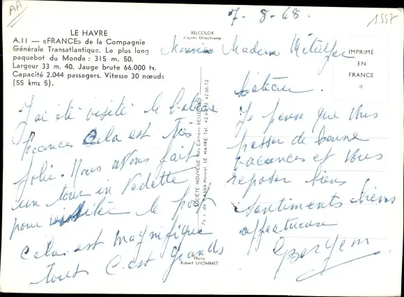 Ak Dampfer France, CGT French Line, Passagierschiff