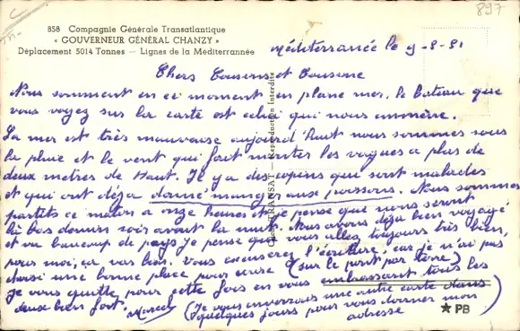 Ak Dampfer Gouverneur General Chanzy, CGT, French Line