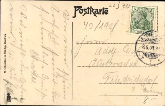 Zustand, siehe Scan, gelaufen, 1908 - ca 14 cm X 9 cm
