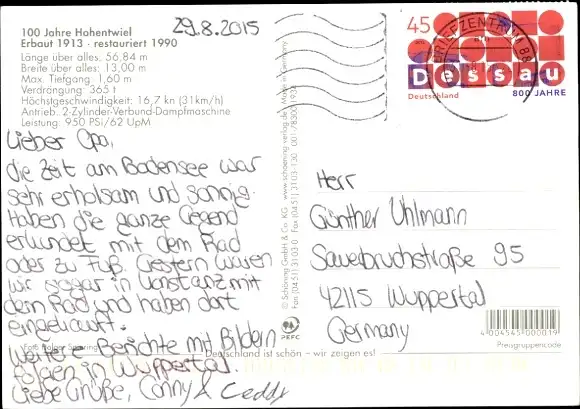 Zustand, siehe Scan, gelaufen, 2015 - ca 15 cm X 11 cm
