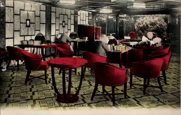 Ak Dampfer Ile de France, CGT, French Line, Bibliothek