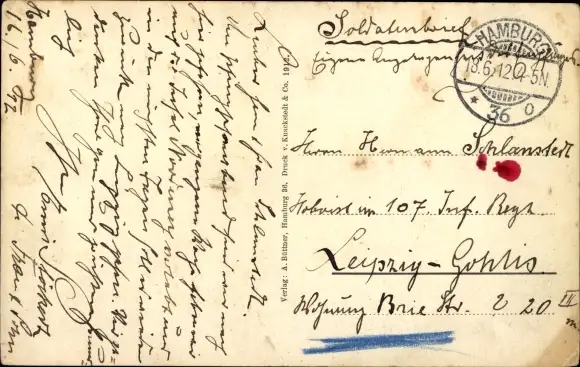 Zustand, siehe Scan, gelaufen, 1912 - ca 14 cm X 9 cm