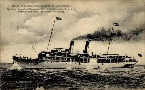Ak Dampfer Imperator, Stettiner Dampfschifffahrtsgesellschaft, Braeunlich, Salonschnelldampfer