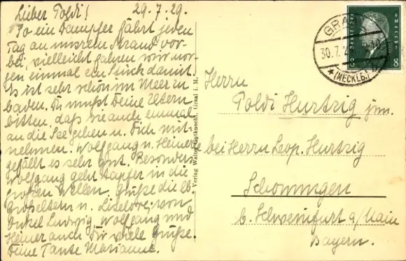 Zustand, siehe Scan, gelaufen, 1929 - ca 14 cm X 9 cm