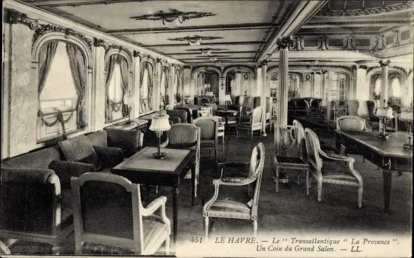 Ak Dampfer La Provence, Innenansicht, Salon, CGT, French Line