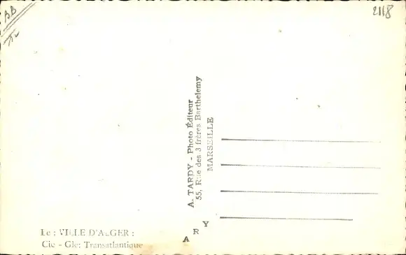 Ak Dampfer La Ville d'Alger, French Line, CGT