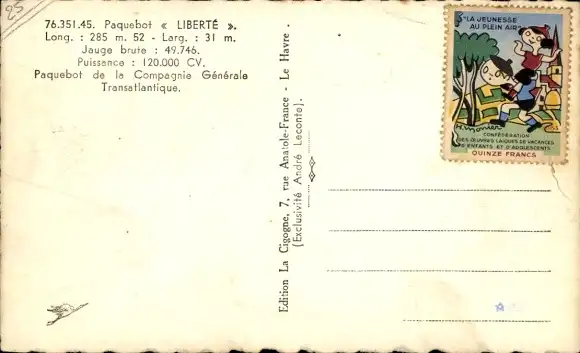 Ak Dampfer Liberte, CGT, French Line