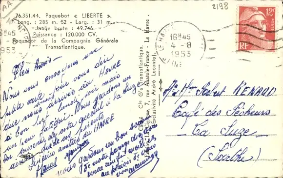 Zustand siehe Scan, gelaufen, 1953 - ca 14 cm X 9 cm