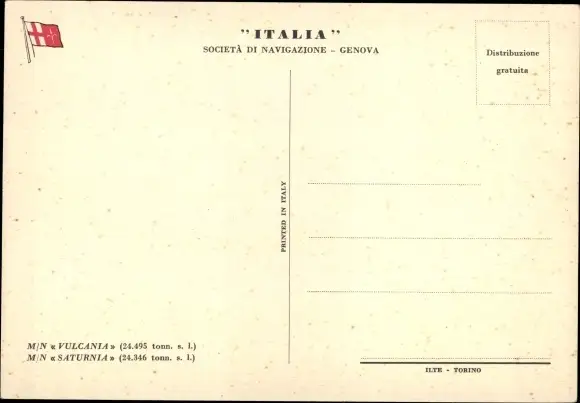 Ak Dampfer MN Vulcania, Saturnia, Italian Line