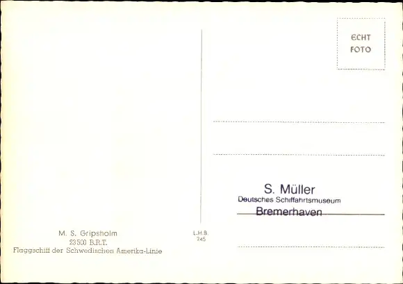 Ak Dampfer M.S. Gripsholm, Svenska Amerika Linien SAL