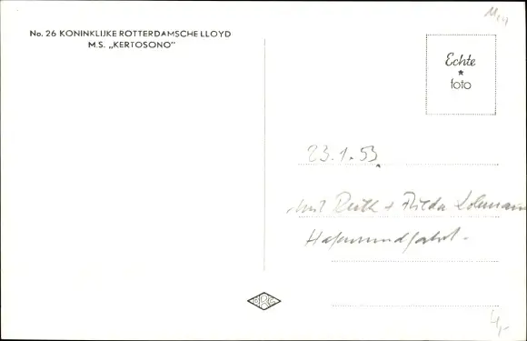 Ak Dampfer MS Kertosono, Frachtschiff, Koninklijke Rotterdamsche Lloyd