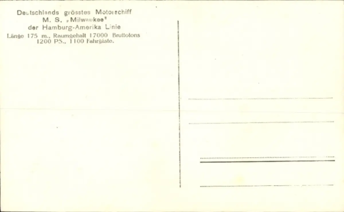Ak Dampfer M.S. Milwaukee, HAPAG