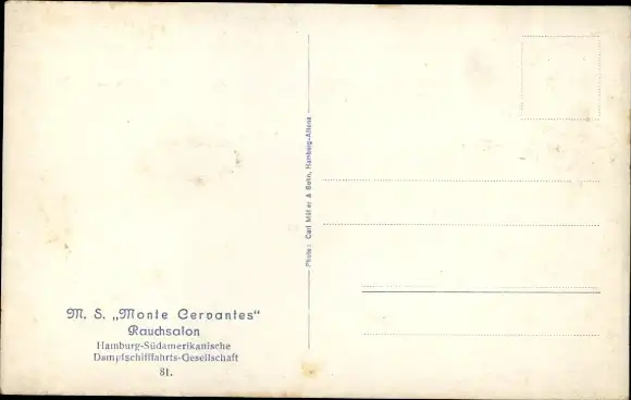 Ak Dampfer MS Monte Cervantes, Innenansicht, Rauchsalon, HSDG